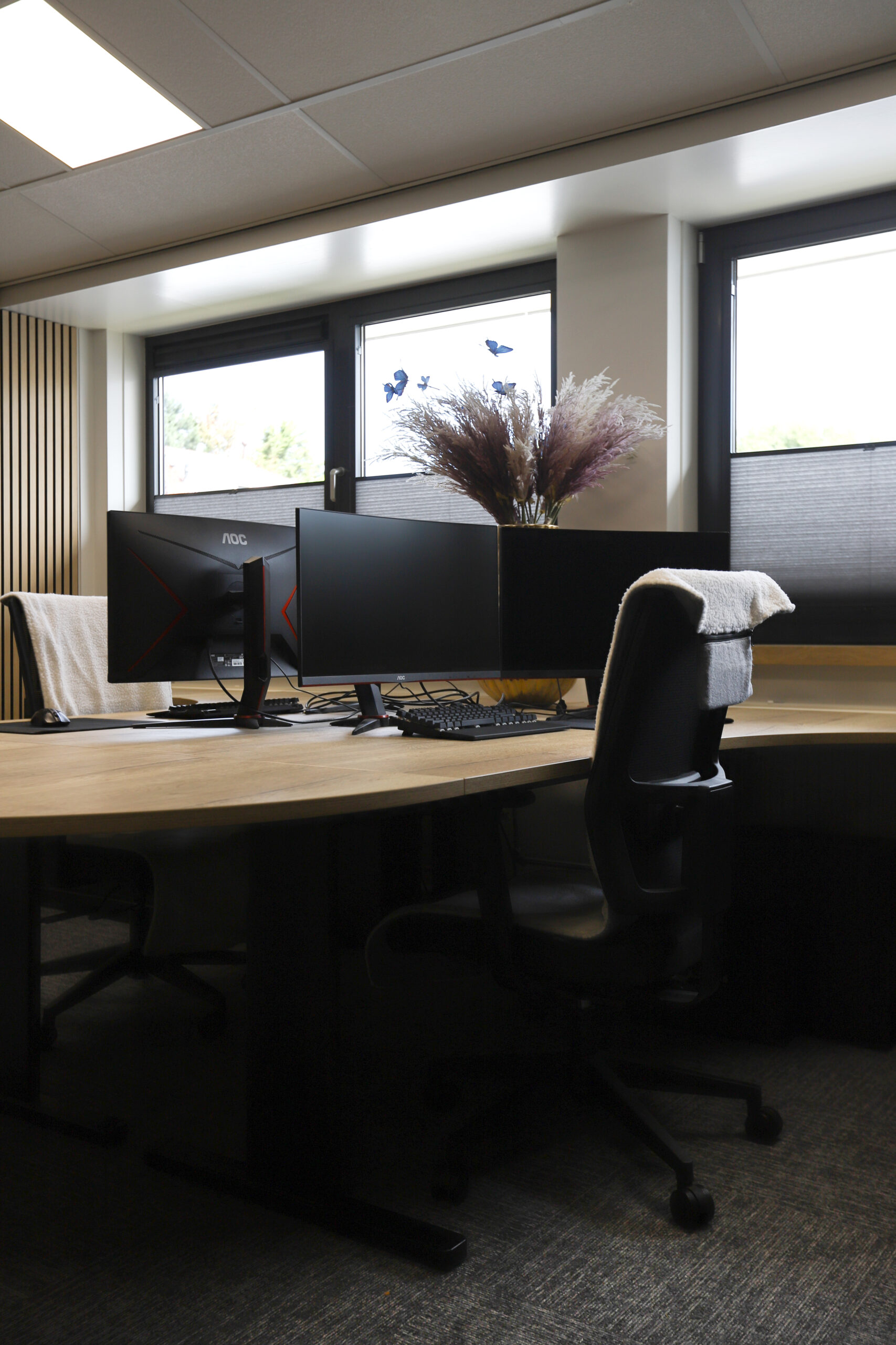 Een kantoor dat rust uitstraalt en prestaties ondersteunt. Medewerkers vinden er focus wanneer het moet, ontmoeting wanneer het kan en ademruimte de hele dag door. De identiteit van Maesterbets komt voelbaar terug in de eenvoud, de balans en het doordachte detail — een omgeving waar je graag binnenkomt én graag blijft.