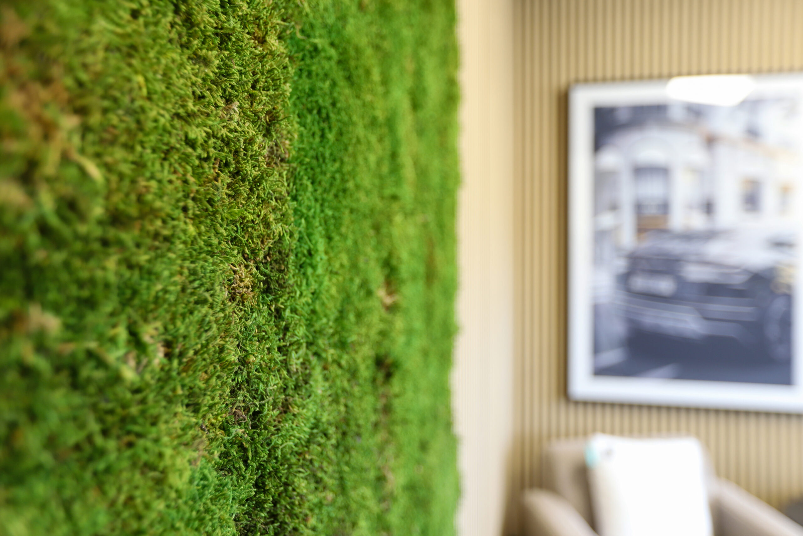 We kozen voor een zachte, neutrale kleurbasis met warme houttonen, tactiele stoffen en veel daglicht. Transparante scheidingen houden zichtlijnen open en versterken het ruimtelijke gevoel, terwijl groen en subtiele accenten de omgeving laten leven zonder te overheersen.